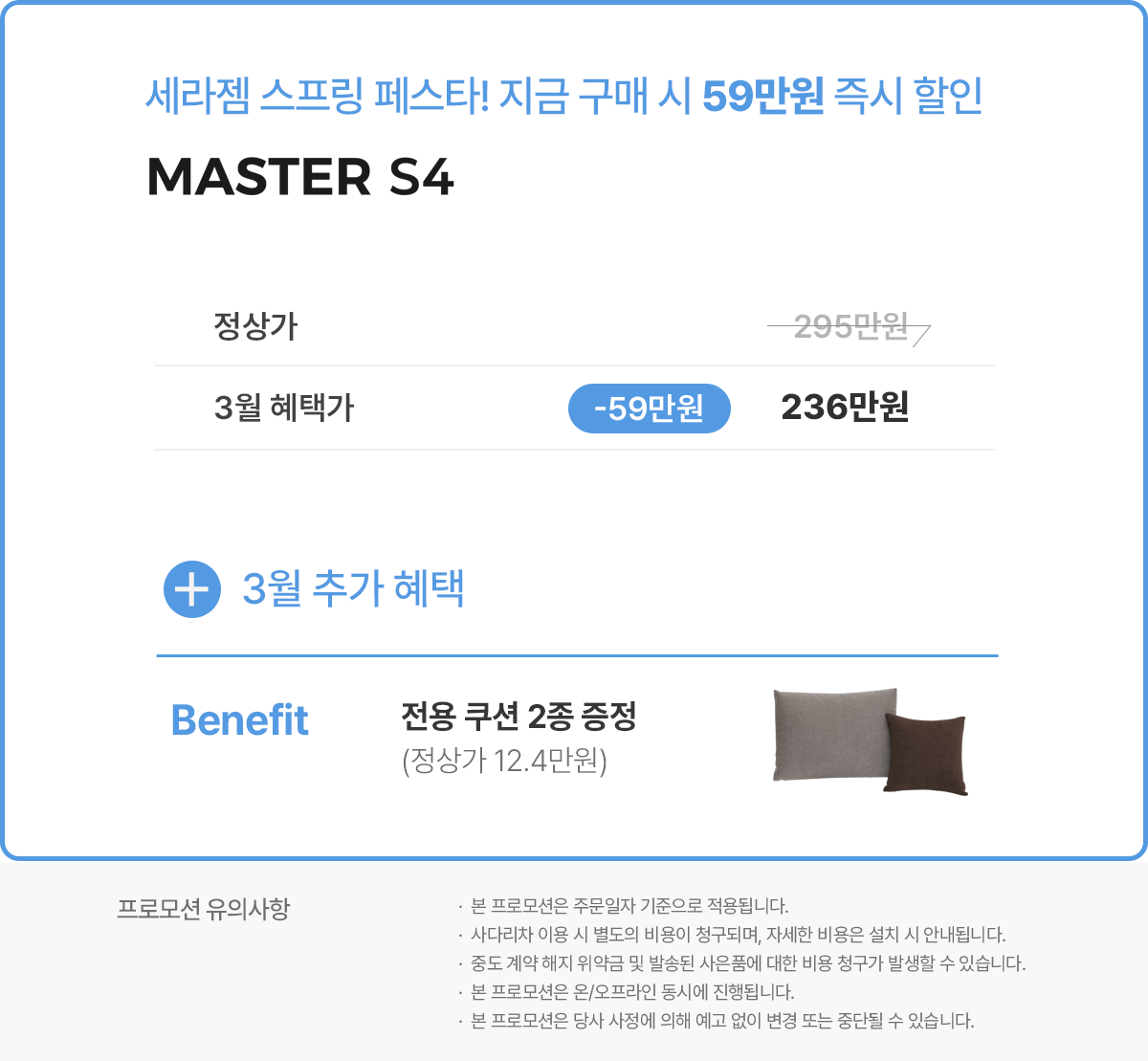 - 무료배송 (계약고객은 구독 등록비 20만원 및 설치비 10만원 무료 혜택 제공)