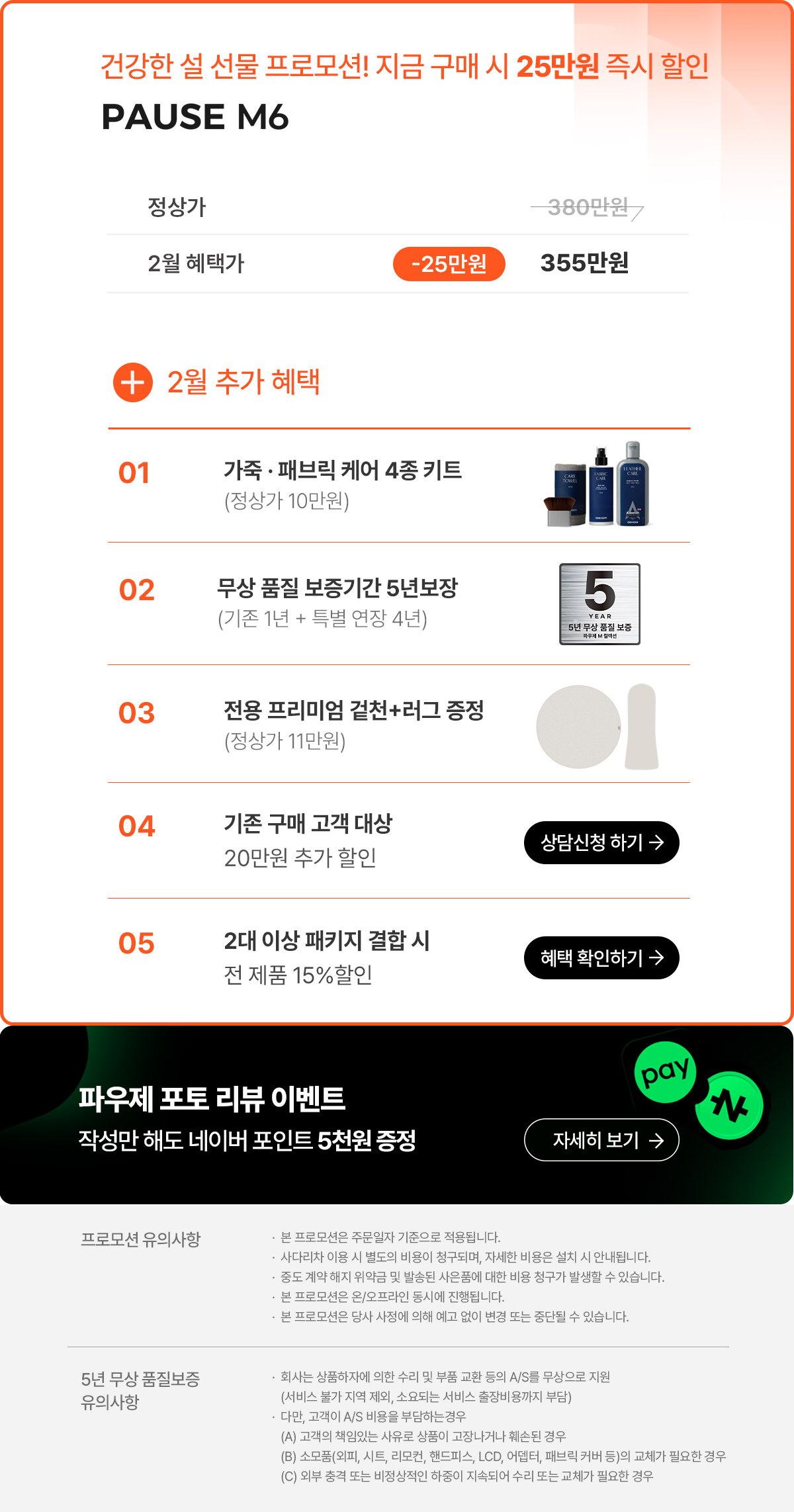 · 안마의자류 무상 A/S 품목(구매 - 설치일로 부터 1년 한정/구독 - 구독 기간동안 한정)
