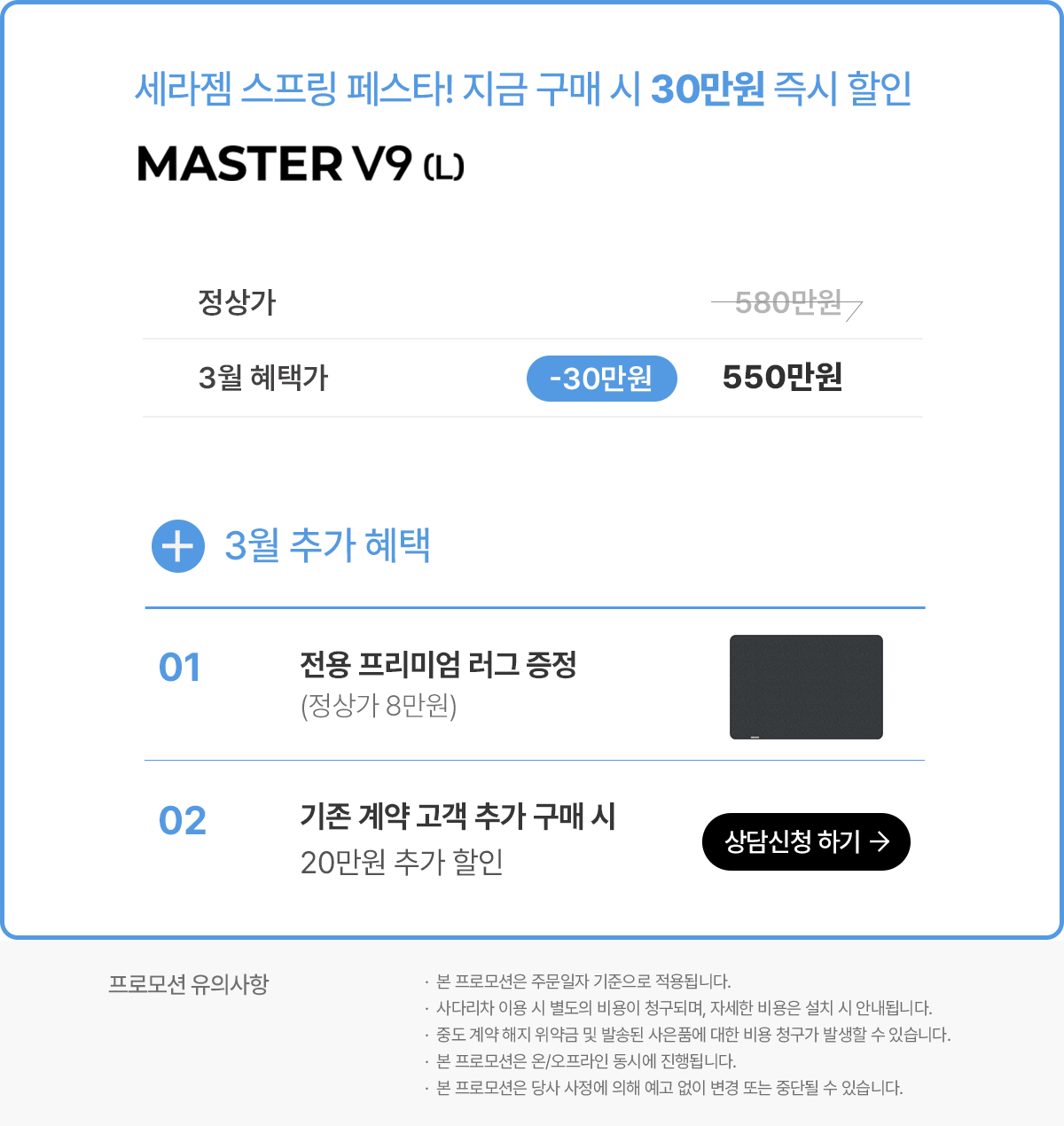 - 무료배송 (계약고객은 구독 등록비 20만원 및 설치비 10만원 무료 혜택 제공)