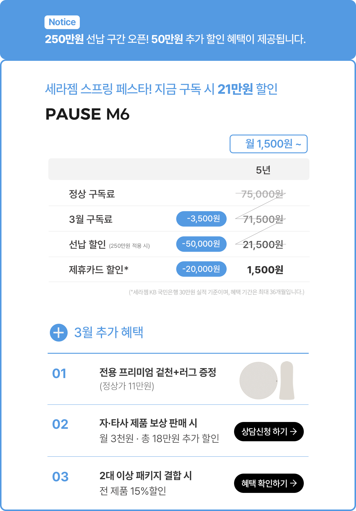 - 무료배송 (계약고객은 구독 등록비 20만원 및 설치비 10만원 무료 혜택 제공)