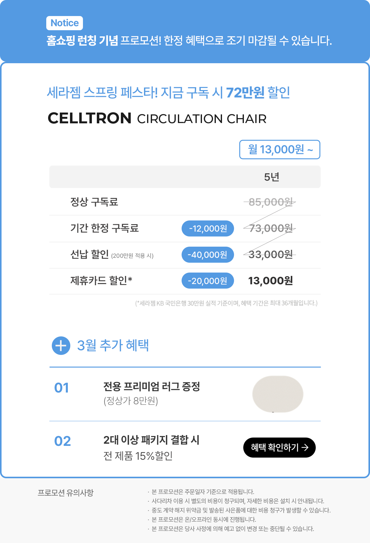 - 무료배송 (계약고객은 구독 등록비 20만원 및 설치비 10만원 무료 혜택 제공)
