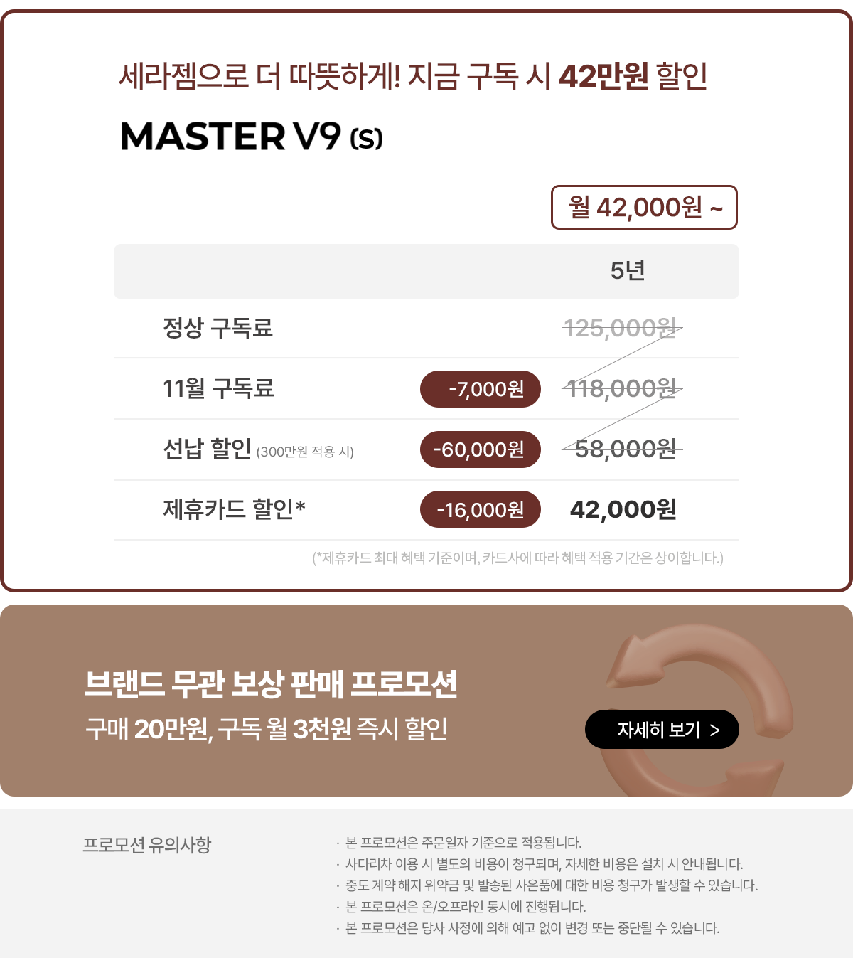 - 무료배송 (계약고객은 구독 등록비 20만원 및 설치비 10만원 무료 혜택 제공)
